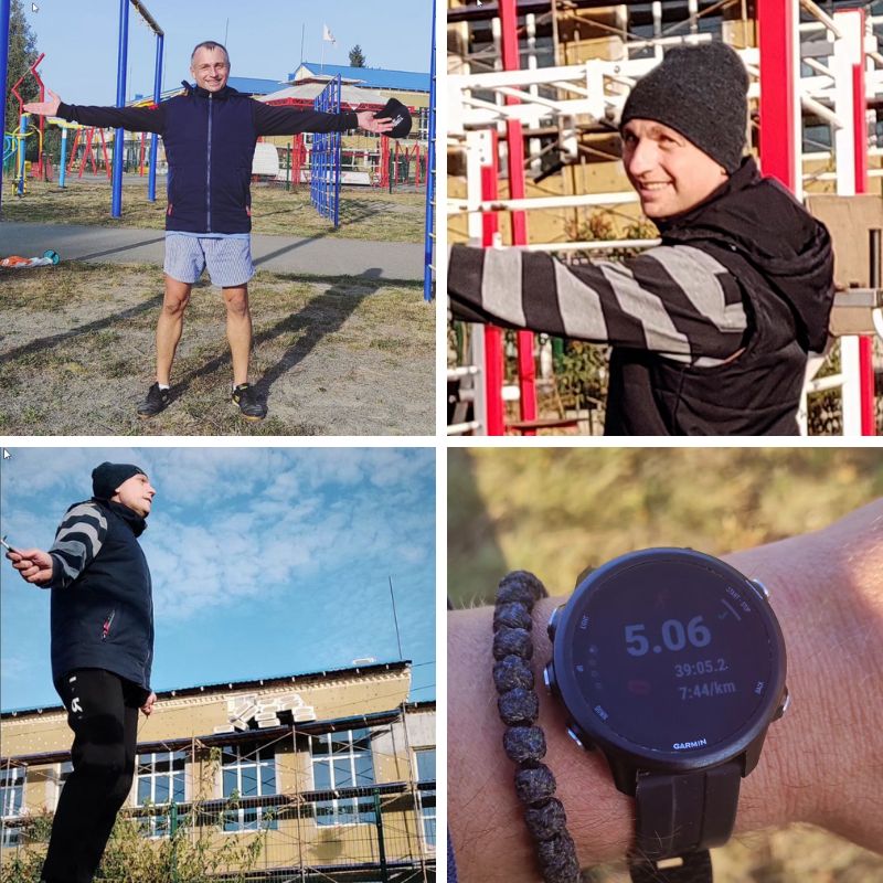 Між цими фотографіями приблизно 100 днів – з того моменту, як я почав практикувати ранкові прогулянки. Перша – кінець весни 2023, друга – початок осені 2023. Думаю, що ви побачите різницю. На першій моя вага приблизно 96 кг, на другій – 83 кг.