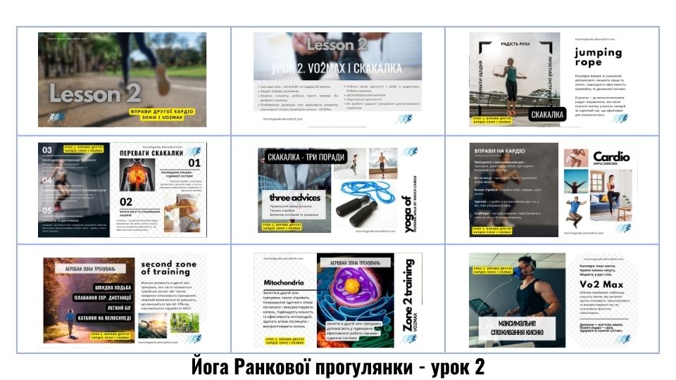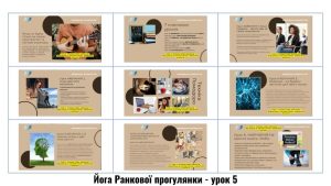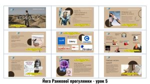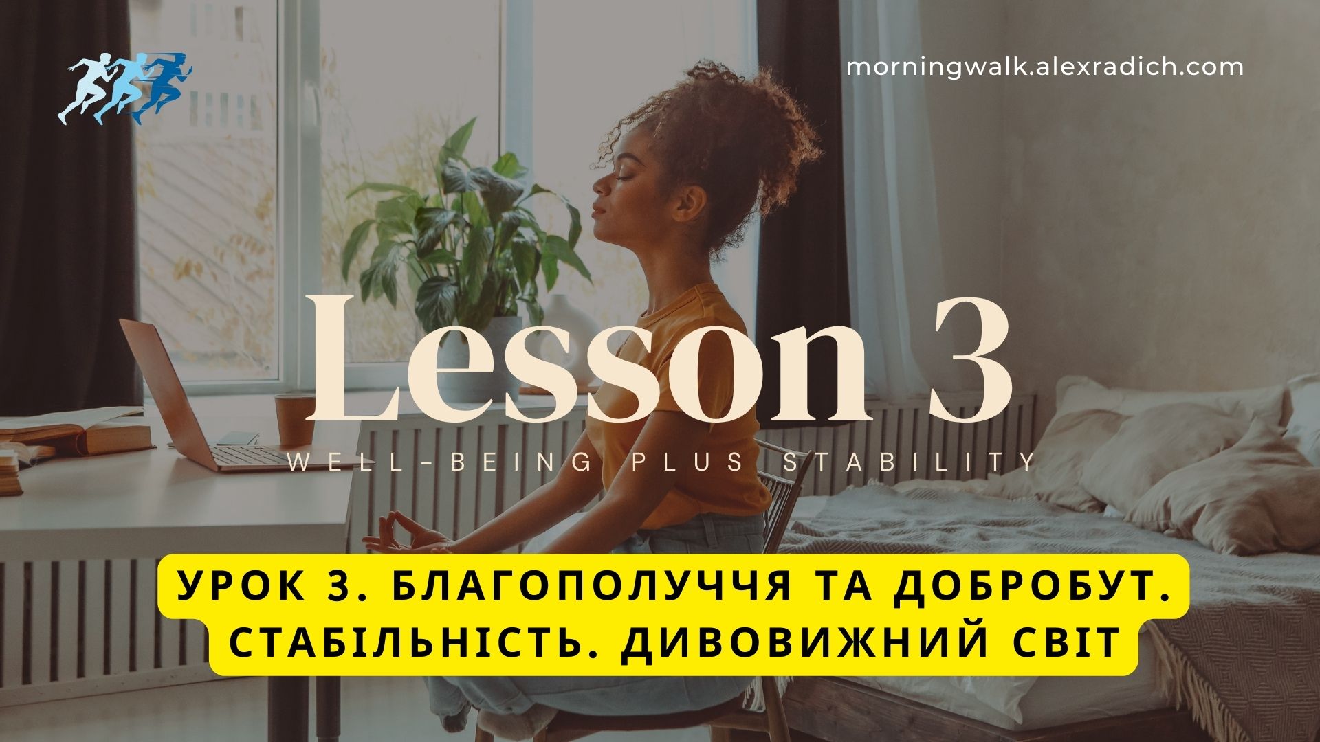 Урок розпочався з розминки на ноги та вправ із скакалкою, після чого було розглянуто кілька варіантів ранкових прогулянок. Ви вивчали стабільність та вправи на розтяжку, а також здійснили розгляд трьох метрик благополуччя: добробут, здоров’я та душевний спокій.